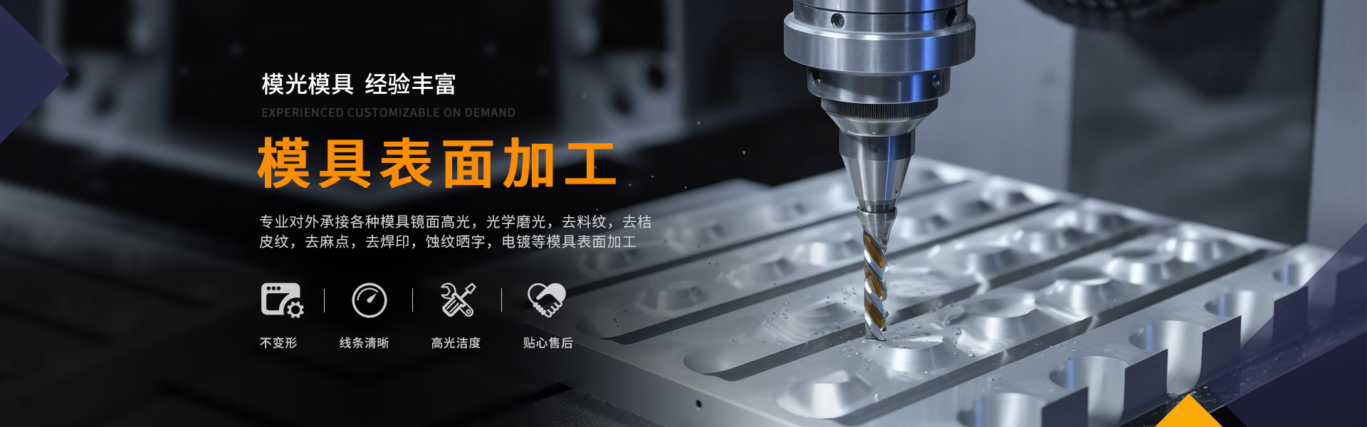 東莞模光模具科技有限公司是一家專業(yè)對(duì)外承接各種模具鏡面高光,光學(xué)磨光,去料紋,去桔皮紋,去麻點(diǎn),去焊印,蝕紋曬字,電鍍等模具表面加工。